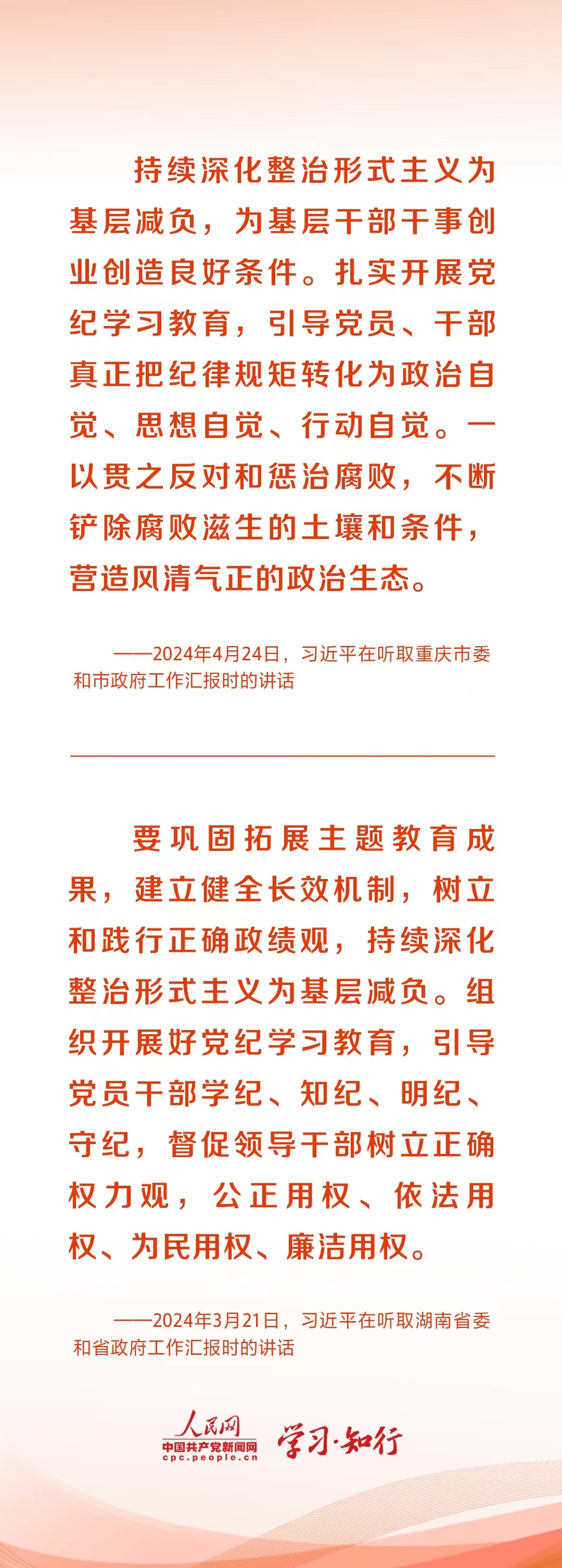 3月,湖南調研,習(xi) 近平指出,黨(dang) 中央明確要求為(wei) 基層減負,堅決(jue) 整治形式主義(yi) 、官僚主義(yi) 問題,要精兵簡政,繼續把這項工作抓下去。
