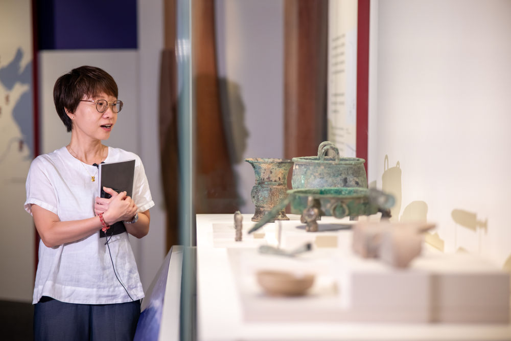 策劃、研究、選品,一年的密切合作為(wei) 展覽注入巧思:展覽兼具學術性與(yu) 教育性,部分內(nei) 容特意參考香港中學曆史教材;入選文物涉及多家機構,各單位經過一番努力才安排好赴港檔期;克服燈光場地等困難,河南團隊還首次為(wei) 體(ti) 量龐大的春秋九鼎八簋九鬲拍攝整體(ti) 大合影,以豐(feng) 富圖片資料……