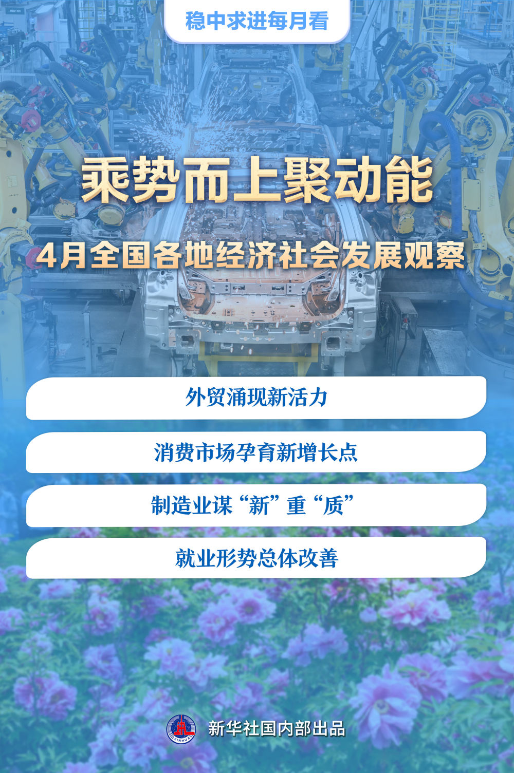 春意盎然育生機。一季度經濟數據出爐釋放積極信號,消費市場亮點紛呈,經濟社會(hui) 發展對就業(ye) 的帶動效應逐步顯現……今年4月,全國各地真抓實幹,乘勢而上,進一步鞏固和增強經濟回升向好態勢。