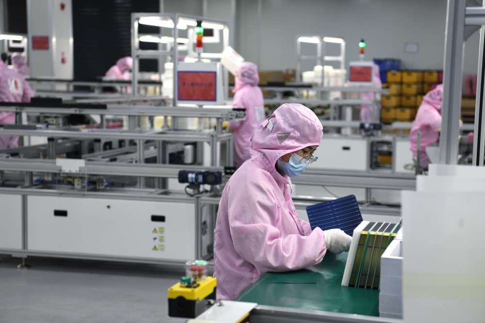 2023年3月1日,工作人員在“頂山—汊河”跨界一體(ti) 化發展示範區的一家太陽能電池片企業(ye) 生產(chan) 線上忙碌。新華社記者 劉軍(jun) 喜 攝