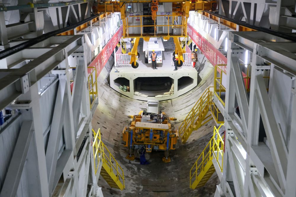 2024年2月16日,中鐵十四局集團的建設者在京唐城際鐵路運潮減河隧道施工。新華社記者 邢廣利 攝
