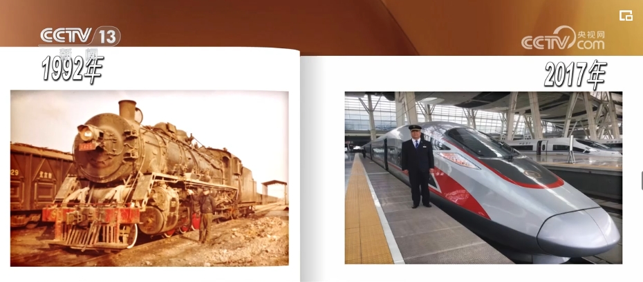 這張稍顯模糊的老照片是1992年,韓軍(jun) 甲剛參加工作時拍下的。他身邊的蒸汽機車當時的運行時速一般隻能開到50公裏左右,這個(ge) 風華正茂的年輕人從(cong) 未設想過,20多年後的2017年,他能駕駛時速350公裏的複興(xing) 號列車。