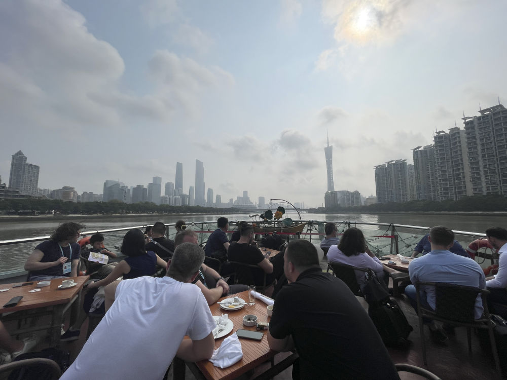 泛舟珠江,法國客商納塔莉這次經水路奔赴廣交會(hui) ,行進中感受湧現的貿易商機。1995年至今,她幾乎屆屆不落。