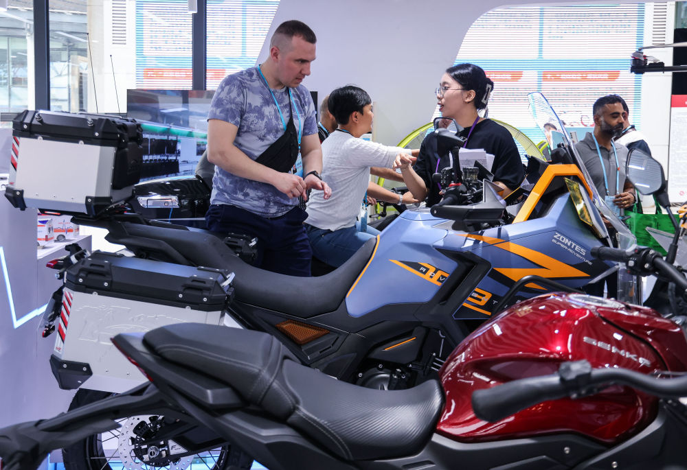 2024年4月15日,采購商在第135屆廣交會(hui) 上了解摩托車產(chan) 品。新華社記者 劉大偉(wei) 攝