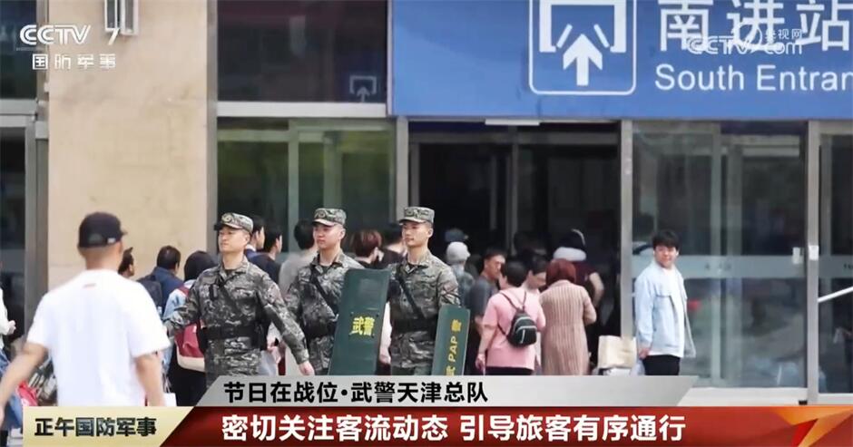 近期,天津站日均客流量達10萬(wan) 人次,武警天津總隊某支隊執勤官兵在車站廣場、進站口、候車大廳等人流密集區域設置巡邏警戒小組,嚴(yan) 密監視客流動態,引導旅客有序通行。
