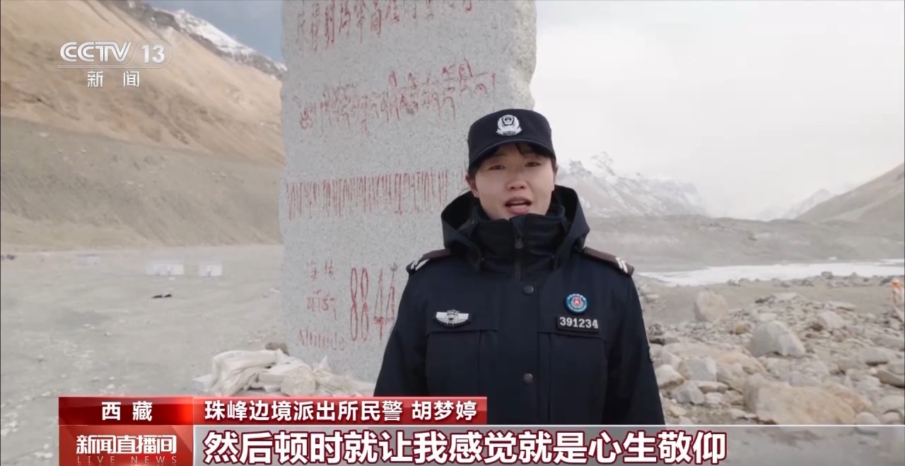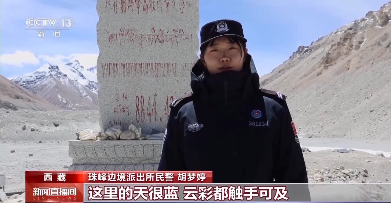 珠峰邊境派出所民警 胡夢婷:這裏的天很藍,雲(yun) 彩都觸手可及。珠穆朗瑪峰,世界最高峰,對於(yu) 我來說不再是課本上那遙不可及的存在,而是我已經抵達並駐守的地方。