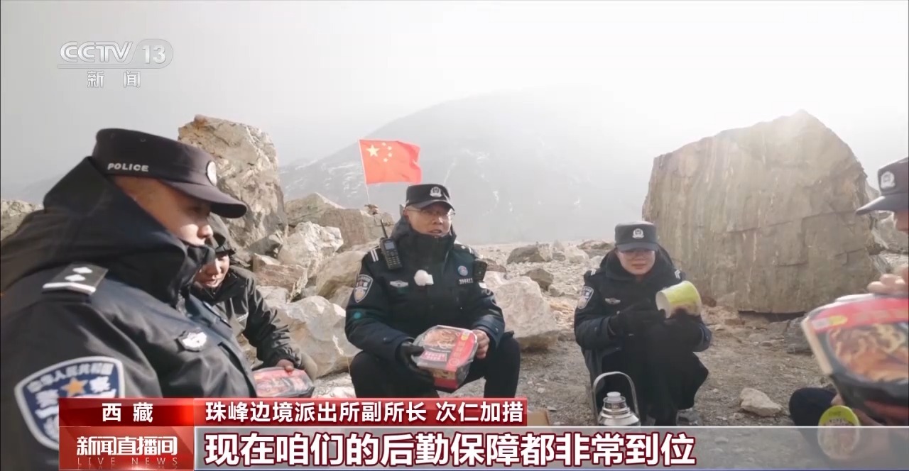 珠峰邊境派出所副所長 次仁加措:這裏風是挺大的。但咱們(men) 有“法寶”,就是高原上的火鍋。現在後勤保障非常到位,在野外哪個(ge) 地方,吃頓熱乎飯已經不是難事了。