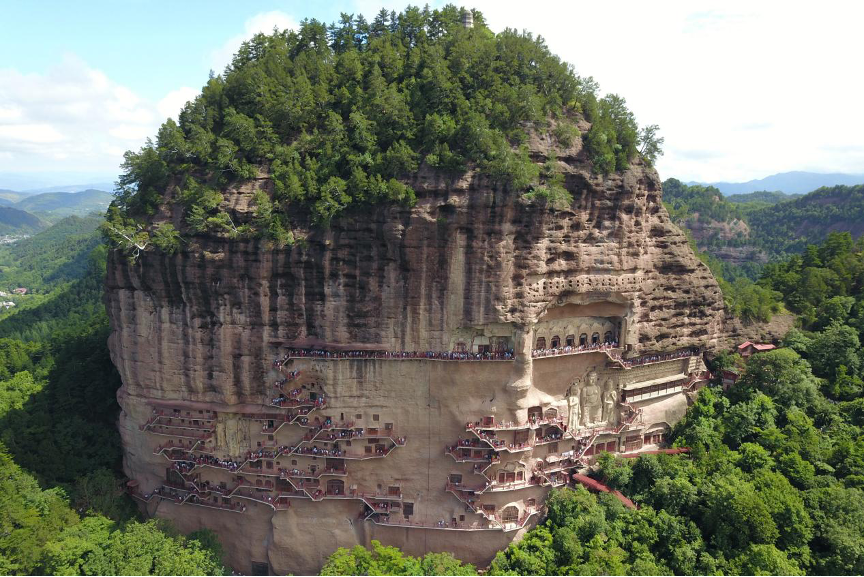 麥積山石窟(無人機照片)。新華社記者 範培珅 攝