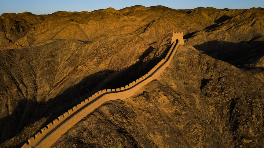 甘肅省嘉峪關(guan) 市拍攝的懸壁長城(無人機照片)。新華社記者 陳鍾昊 攝