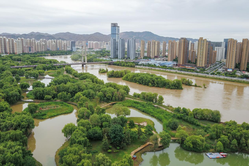 甘肅省蘭(lan) 州市拍攝的銀灘濕地公園景色(無人機照片)。新華社記者 範培珅 攝