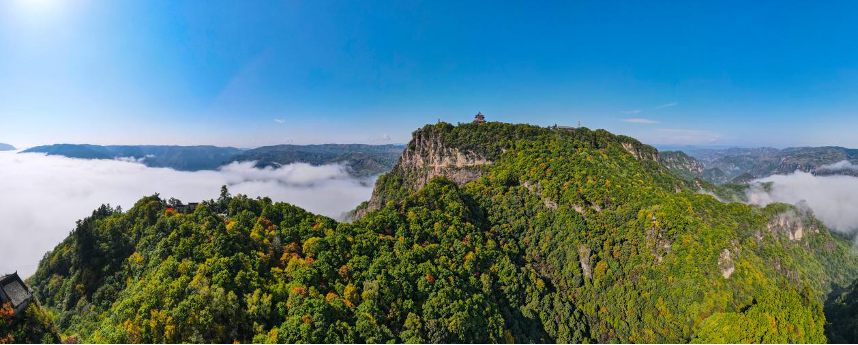 甘肅省平涼市崆峒山雨後雲(yun) 海美景(無人機照片)。新華社發(吳希會(hui) 攝)