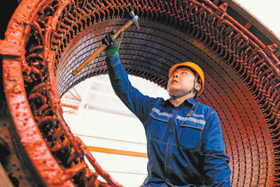 在包(頭)神(木)鐵路機務分公司東(dong) 勝檢修設備車間,青年職工正對機車主發電機部件進行質量檢查。 張 棖 李尚昆攝影報道