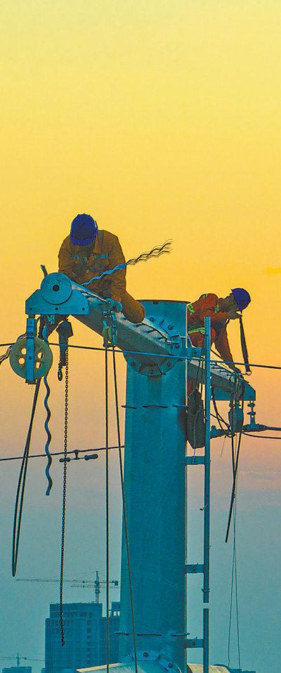山東(dong) 省聊城市電力部門工作人員正對線路進行檢修。 謝 軍(jun) 攝(人民視覺)
