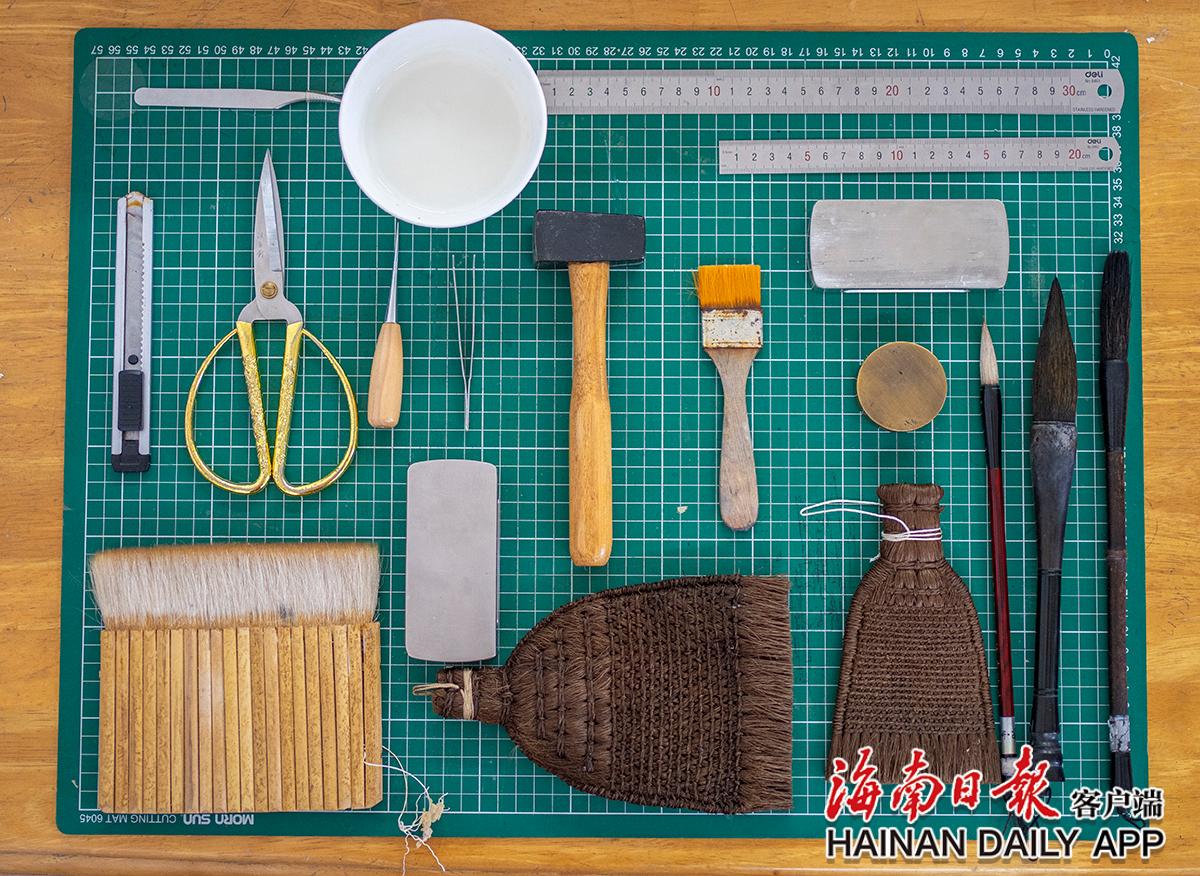 古籍修複師黃文鋒的部分工具。海南日報記者袁琛 攝