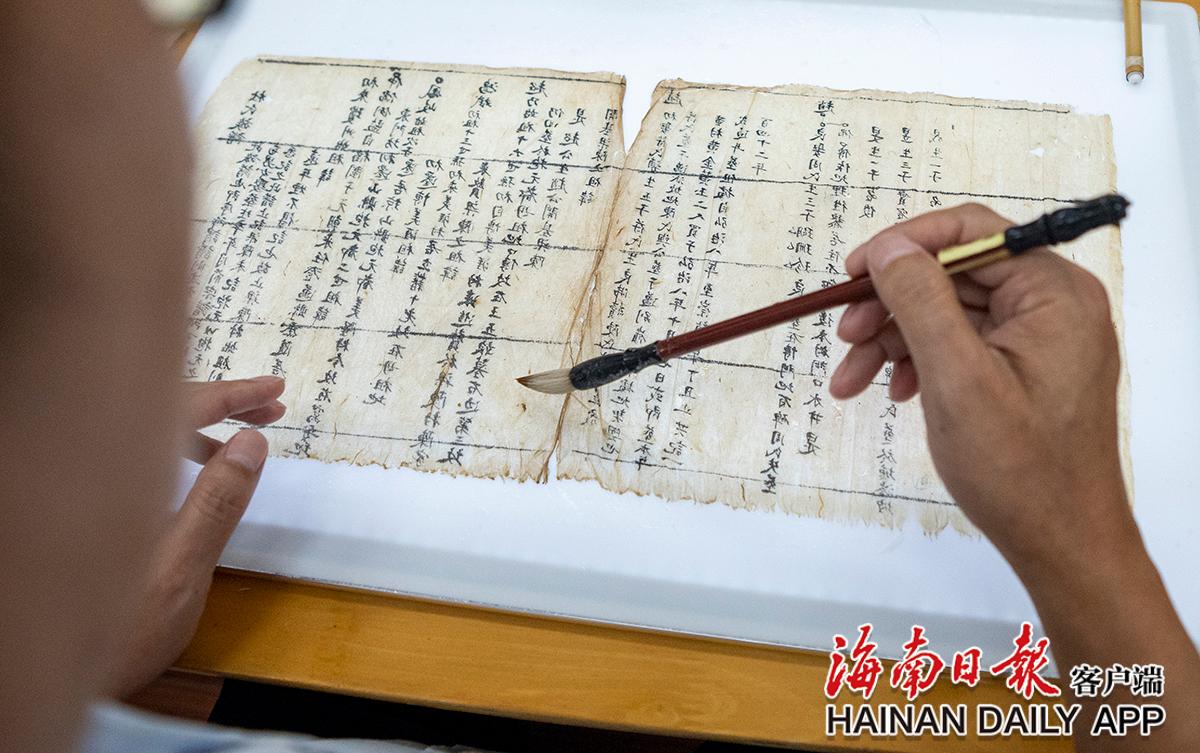 “2008年的時候,國家圖書(shu) 館古籍保護中心有一項為(wei) 期3個(ge) 月的古籍修複培訓計劃,當時海南隻有我一人報名參加。”黃文鋒答道,“在北京,我師從(cong) 我國古籍修複專(zhuan) 家杜偉(wei) 生,係統地了解和學習(xi) 了所有的工序和技術。”