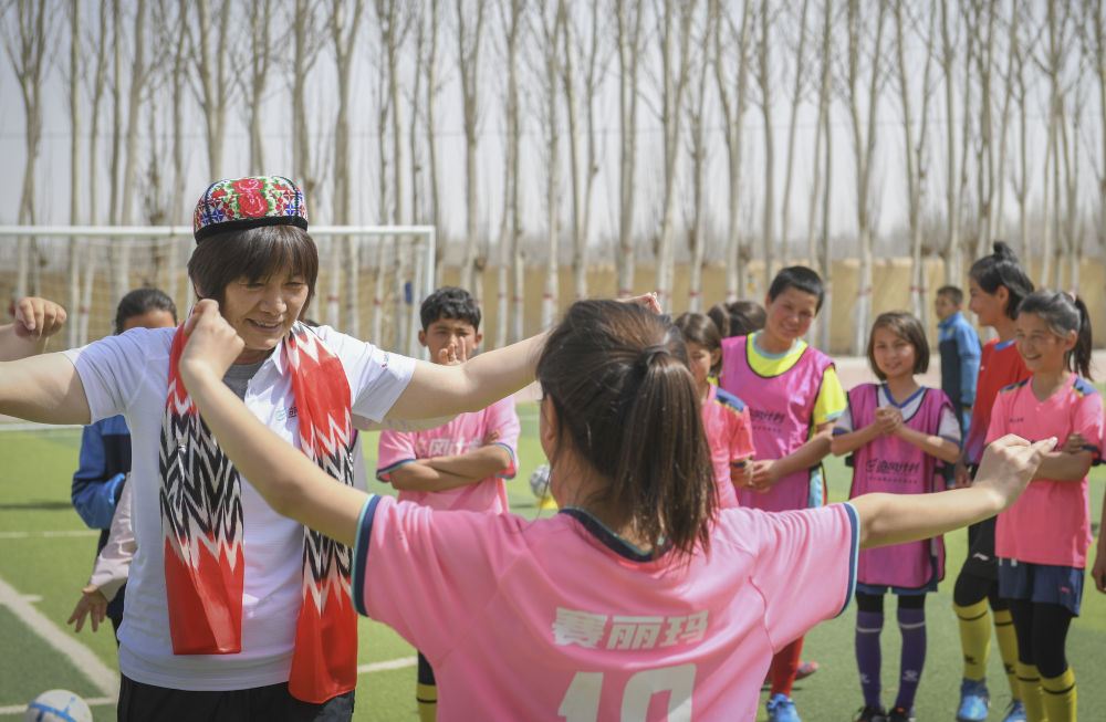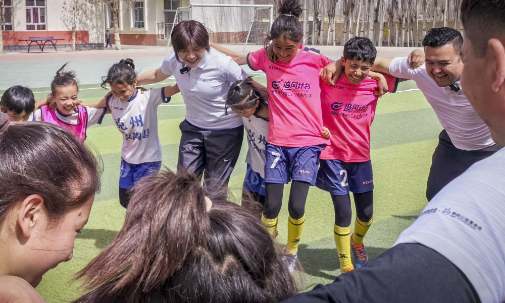 足球賽奪冠,不是第一次了,學校已經連續多年蟬聯阿克陶縣校園聯賽女子組冠軍(jun) ,連縣城賣饢的大叔都知道,且克村小學的女足很厲害。但這一次有點不一樣,是因為(wei) 兩(liang) 件事情中的另一件,是中國女足前主教練水慶霞要來看她們(men) 的比賽,帶她們(men) 訓練。