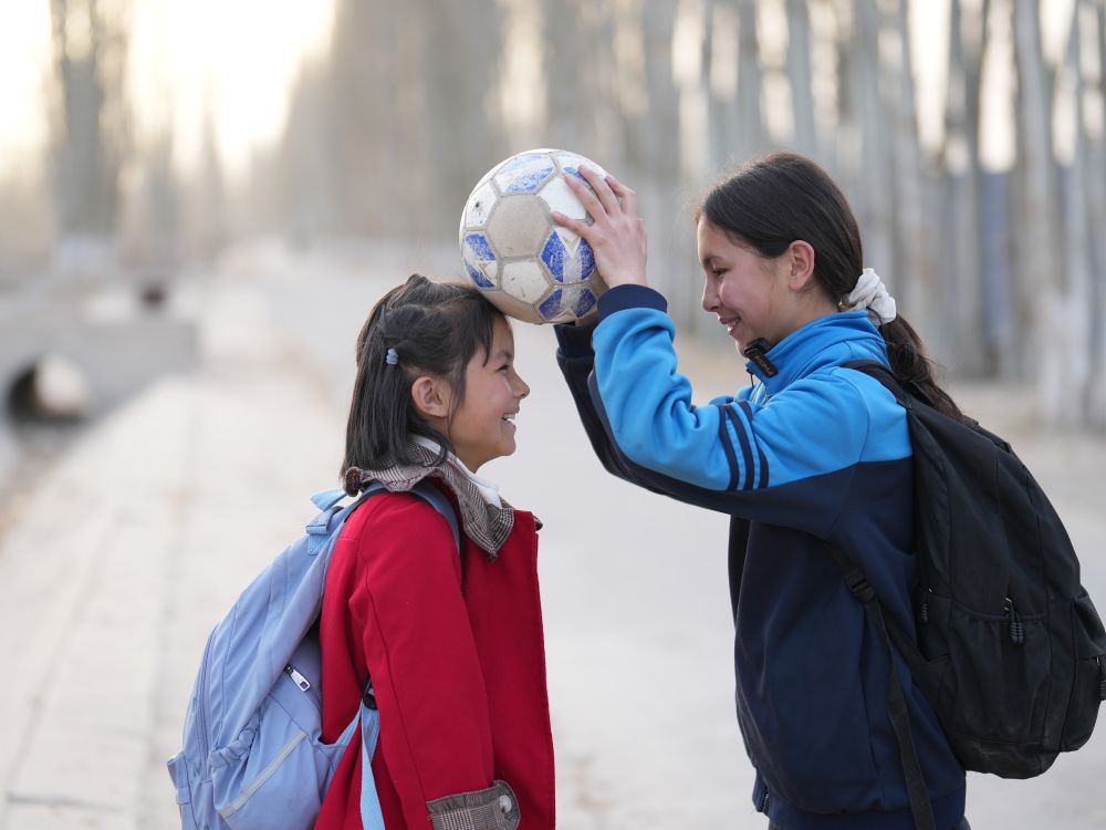 “我的紙飛機呀飛呀飛,飛到了蘆蕩邊。帶我去看落日晚霞,還有開滿花的田野……”姐妹倆(lia) 給水指導唱了她們(men) 學過的歌。水指導給她們(men) 送了嶄新的足球,勉勵她們(men) 要好好踢球,也要好好學習(xi) 。