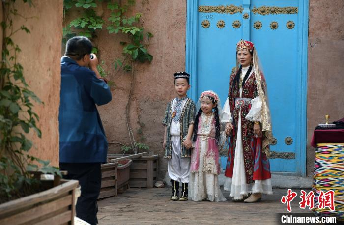 漫步在被稱為(wei) “天然大影棚”的喀什古城大街小巷,隨處可見遊客們(men) 穿著“迪麗(li) 熱巴”同款服飾“定格”美麗(li) 時光。遊客王娟妮說:“喀什古城很漂亮,拍一組照片,記錄自己的青春時光,挺好的。”