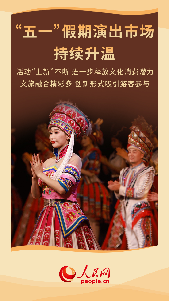 演唱會(hui) 、音樂(le) 節場場爆滿,沉浸式實景演出震撼“出圈”,劇院內(nei) 掌聲四起、熱鬧非凡……今年“五一”假期,全國演出市場持續升溫,類型多元、內(nei) 容豐(feng) 富的演出活動“上新”不斷,進一步釋放文化消費潛力。