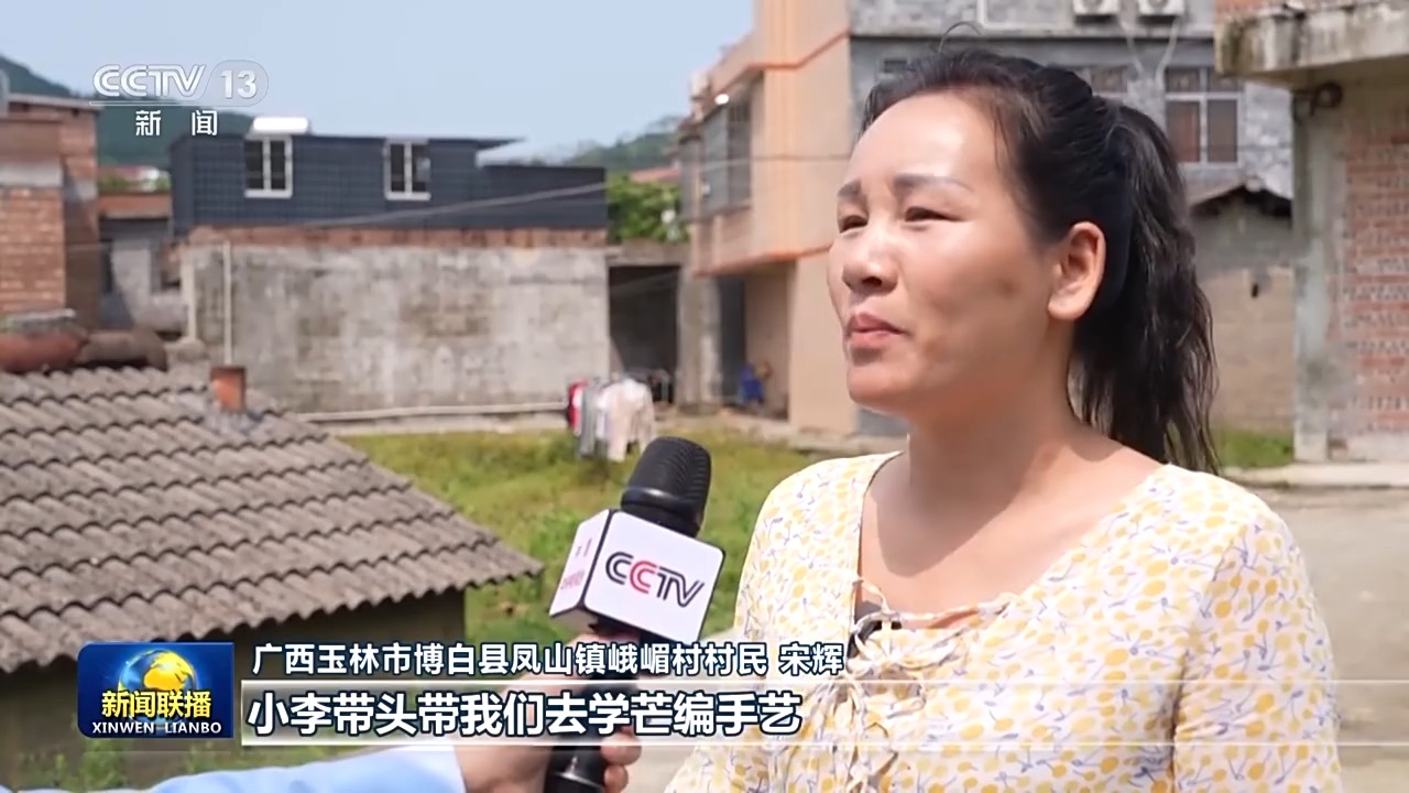 廣西玉林市博白縣鳳山鎮峨嵋村村民 宋輝:小李帶頭帶我們(men) 去學芒編手藝,幫我們(men) 找訂單,以前楊梅下了市,我們(men) 基本也沒什麽(me) 能幹的了,現在都有點忙不過來。