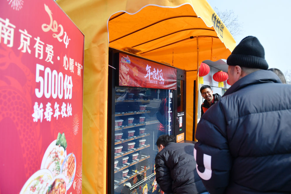 2024年2月9日,南京市交通運輸局麵向網約車司機、快遞員等新業(ye) 態勞動者開展“年夜飯”贈送活動。 新華社記者 柳文惠 攝