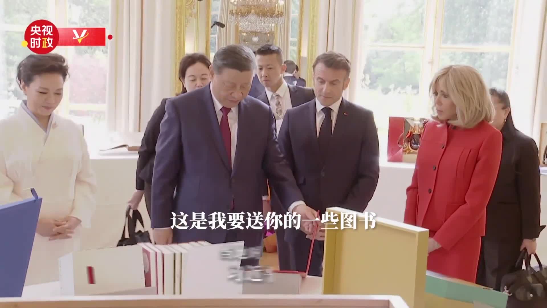“這是我要送你的一些圖書(shu) ,都是中國翻譯的法國小說,中文的法國小說。”習(xi) 近平主席走到一排書(shu) 籍麵前,微笑著說。