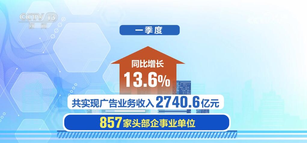 市場監管總局公布數據顯示,一季度,857家頭部企事業(ye) 單位共實現廣告業(ye) 務收入2740.6億(yi) 元,同比增長13.6%。