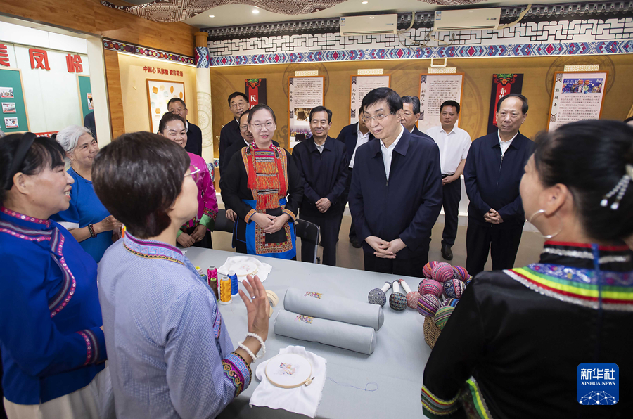 5月6日至8日,中共中央政治局常委、全國政協主席王滬寧在廣西調研。這是5月8日,王滬寧在南寧市青秀區鳳嶺北社區“石榴籽”家園同群眾(zhong) 交流。新華社記者 李濤 攝