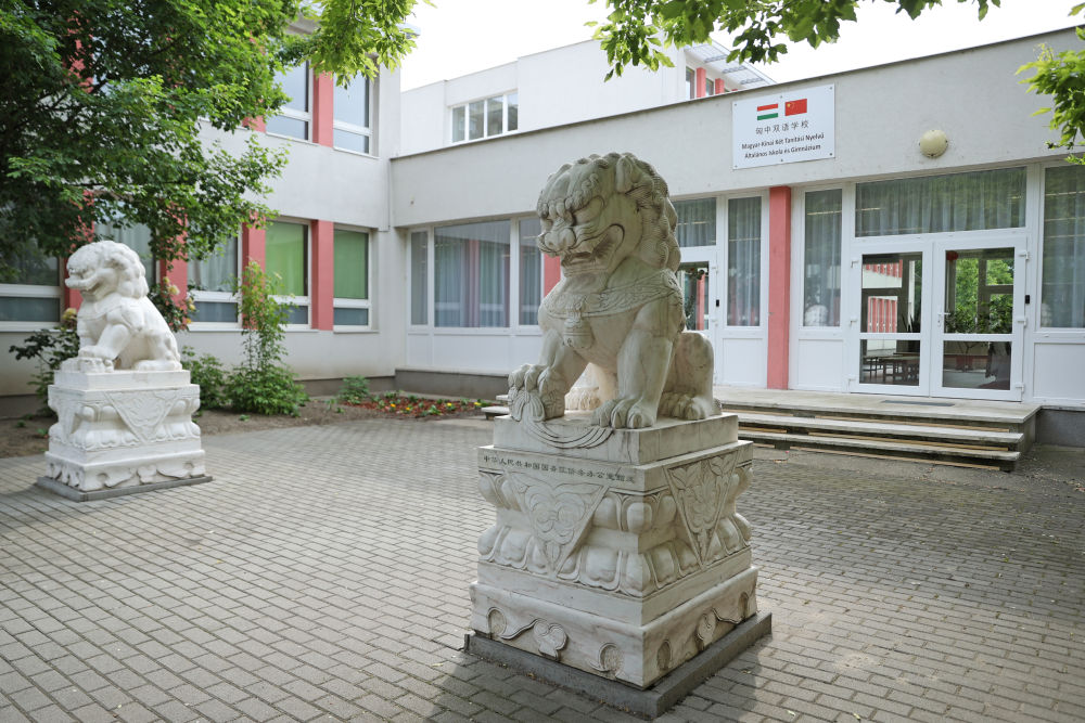 這是匈中雙語學校校門(2024年5月3日攝)。