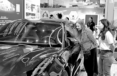 采購商在第135屆廣交會(hui) 上參觀新能源汽車。新華社發