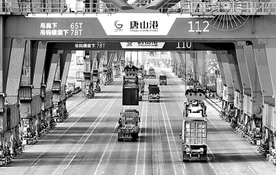 河北唐山港積極打造國際物流港。圖為(wei) 工人在京唐港區集裝箱碼頭操作吊裝設備。新華社發