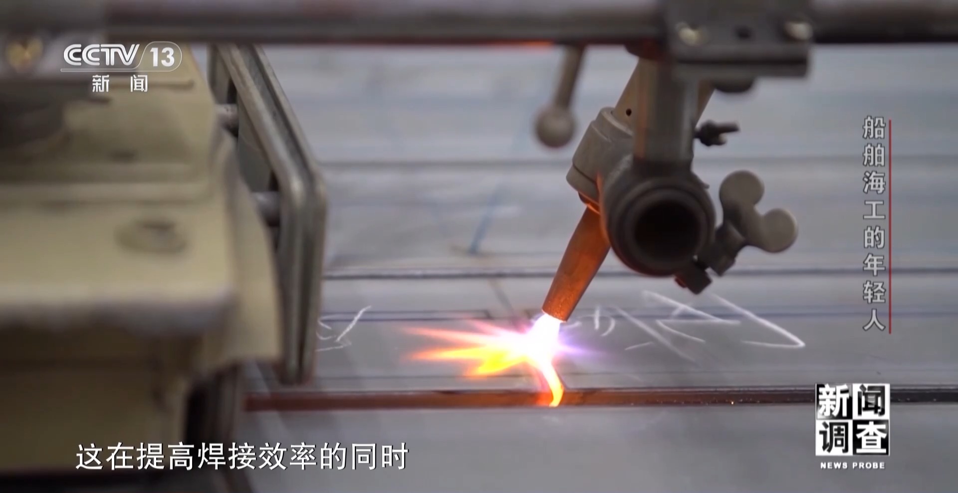 上海外高橋造船有限公司精度技術部高級工程師 鄧琳:一方麵焊接效率高了,把熱量用在刀刃上了。第二它不會(hui) 影響非焊縫區域的熱循環,激光能把溫度集中在非常細的、窄的一條線上,就不會(hui) 影響邊上的變形。
