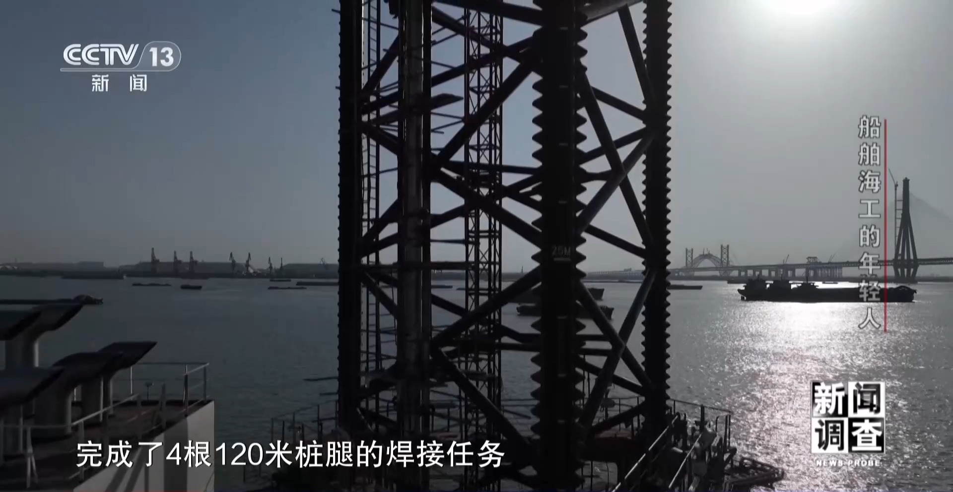 孫玉龍說,他們(men) 最後用6個(ge) 月的時間,完成了4根120米樁腿的焊接任務,焊接質量和精度都達到了設計要求。