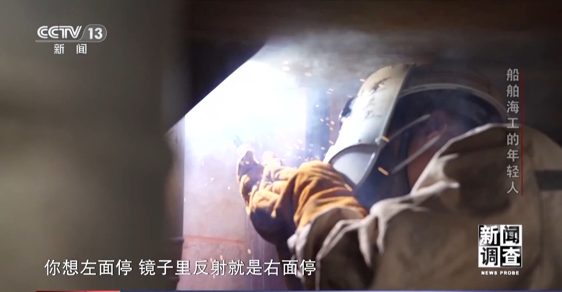 孫玉龍說,船舶和海工裝備出現越來越多結構複雜、空間狹小的情況,針對視野受限的位置,單手單向焊接或盲焊無法保證焊接質量,2017年孫玉龍開始探索左右手鏡麵焊接技術。