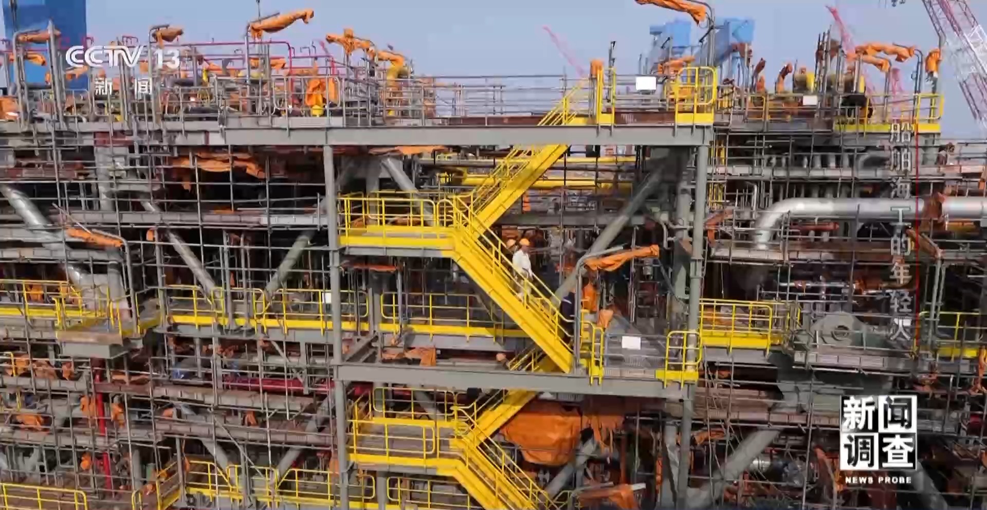 啟東(dong) 中遠海運海洋工程有限公司高級工程師 孫博文:這個(ge) 模塊是液化石油氣的壓縮和蒸汽回收壓縮的一個(ge) 模塊,這一個(ge) 模塊就相當於(yu) 陸地上的一個(ge) 壓縮車間。