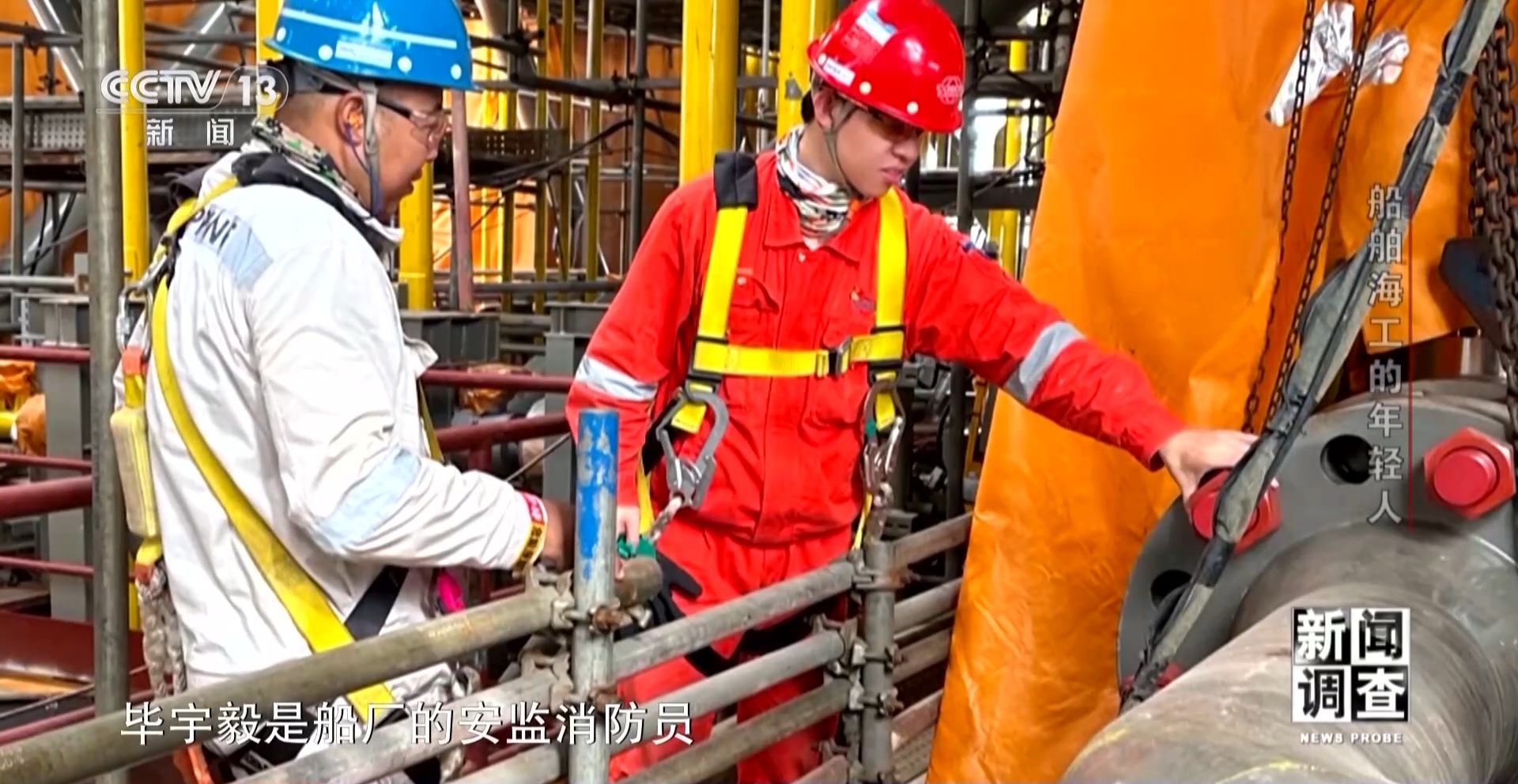 畢宇毅今年25歲,2021來到船廠工作,他是船廠的安監消防員。在船廠工作的兩(liang) 年多時間裏,最讓他記憶深刻的是自己參與(yu) 的第一艘海上浮式生產(chan) 儲(chu) 卸油平台離開的時刻。