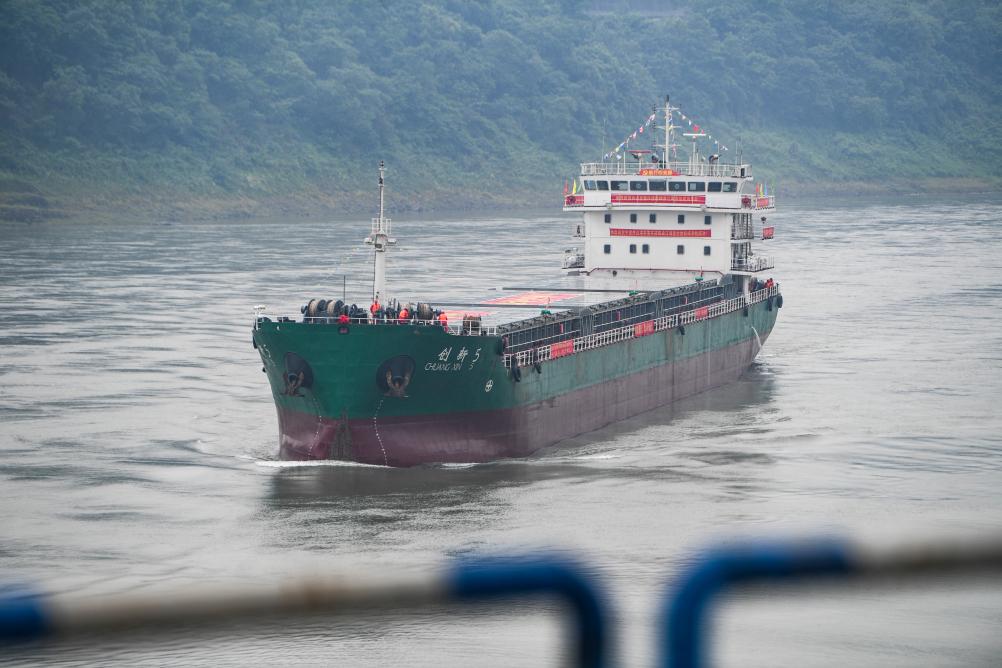重慶市口岸物流辦水運物流處處長康建表示,“舟山—重慶”江海直達新航線正式貫通,特定航線江海直達船得以穿越三峽大壩直連江海,江海“同程”減少了長江上下遊水路運輸中轉環節,並提高貨物運輸安全性和物流預期。