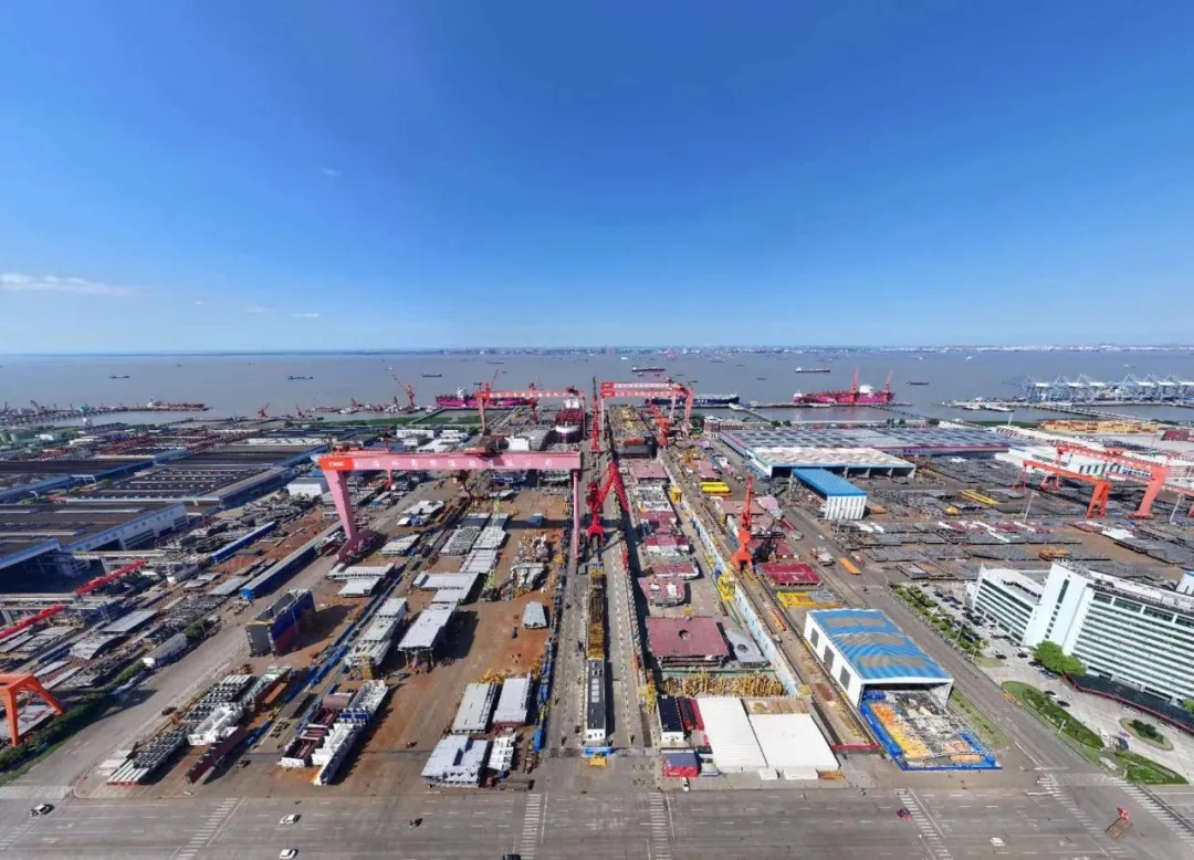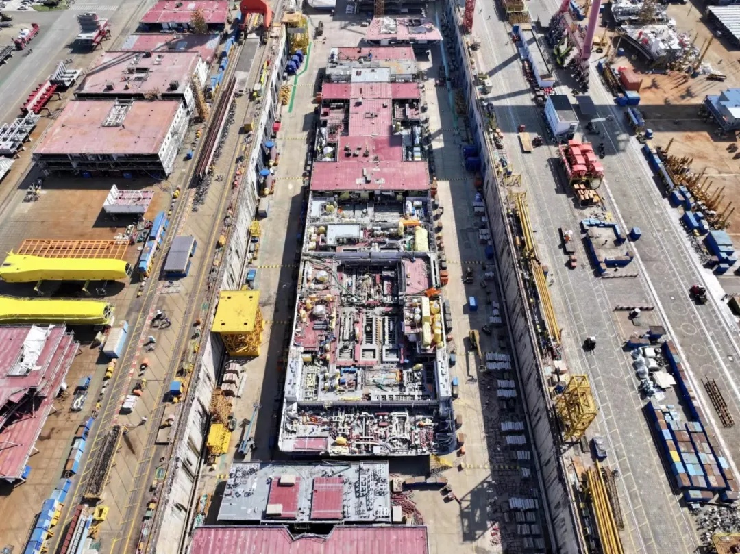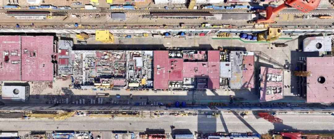俯瞰第二艘國產(chan) 大型郵輪搭載總裝現場。陸佳駿 攝
