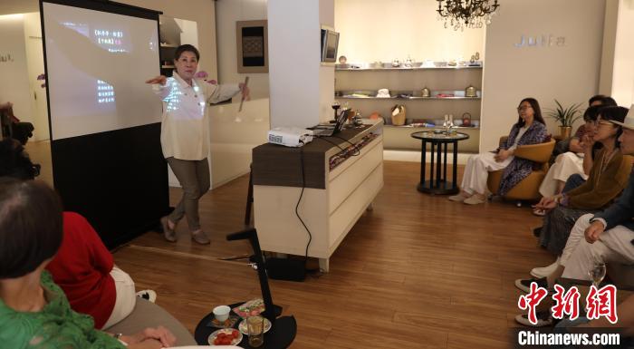 5月10日,台灣知名藝術史學者朱惠良在台北一個(ge) 文化沙龍講述昆曲藝術。圖為(wei) 朱惠良現場清唱《牡丹亭》名段。中新社記者 劉舒淩 攝