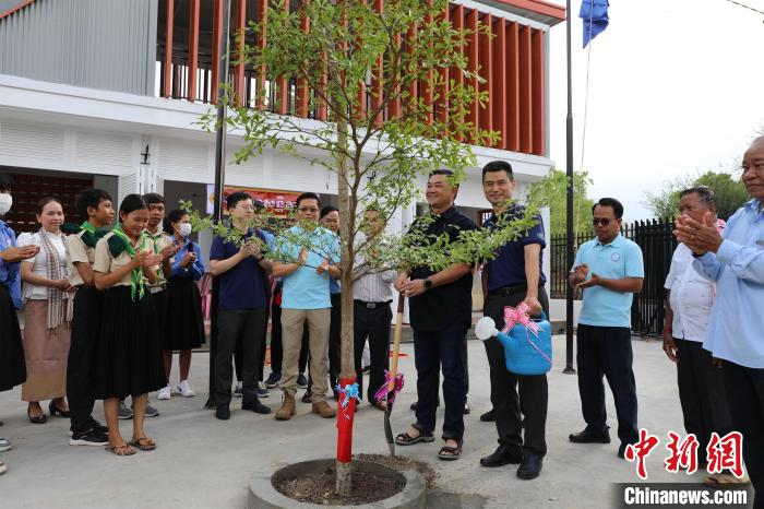 當地時間5月12日,在距離金邊以南約60公裏的一個(ge) 擁有125戶家庭、500餘(yu) 人口的小鄉(xiang) 村,柬埔寨民間社會(hui) 組織聯盟論壇主席蓋裏維希揮鏟添泥,中國和平發展基金會(hui) 駐柬埔寨辦事處主任劉戰國提壺澆水,合力種植下一棵象征著中柬友誼的隆都花樹。