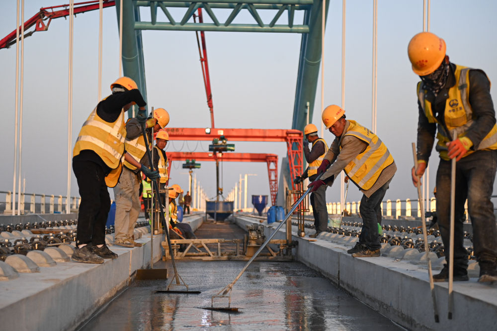 2024年3月20日,中鐵三局建設者在滬蘇湖鐵路東(dong) 苕溪特大橋上施工。滬蘇湖鐵路起自上海虹橋站,途經江蘇省蘇州市,終至浙江省湖州市湖州站。項目建成運營後,將進一步完善區域路網布局,促進沿線經濟社會(hui) 發展和長三角一體(ti) 化高質量發展。新華社記者 黃宗治 攝