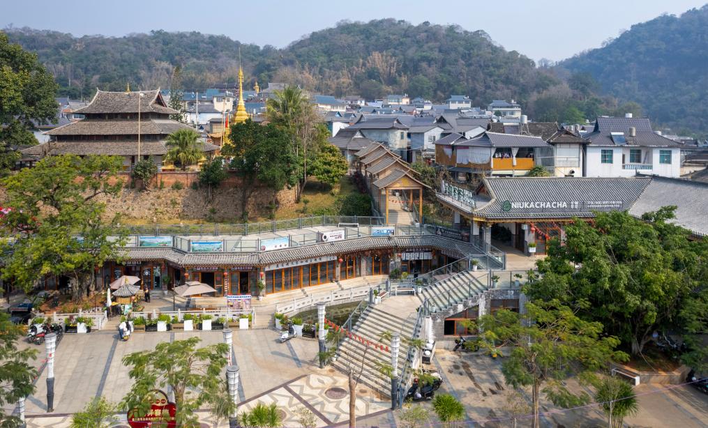 這是2024年3月19日拍攝的雲(yun) 南省孟連縣精品咖啡主題街(無人機照片)。新華社記者 陳欣波 攝