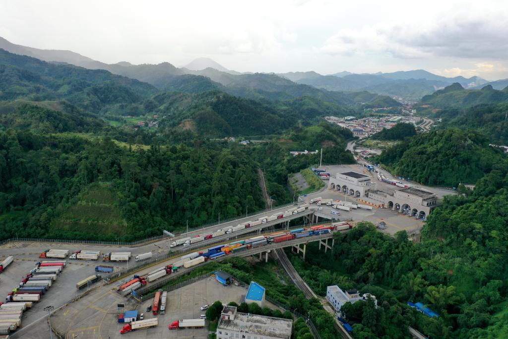這是繁忙的廣西憑祥友誼關(guan) 口岸(2023年9月9日攝,無人機照片)。新華社記者 曹禕銘 攝