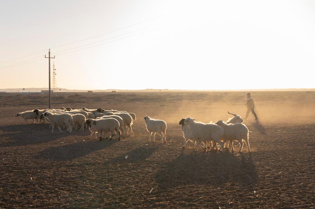在內(nei) 蒙古阿拉善左旗烏(wu) 力吉蘇木溫都爾毛道嘎查,牧民朝勒門格爾勒在晨光中放羊(2023年11月17日攝)。新華社記者 才揚 攝