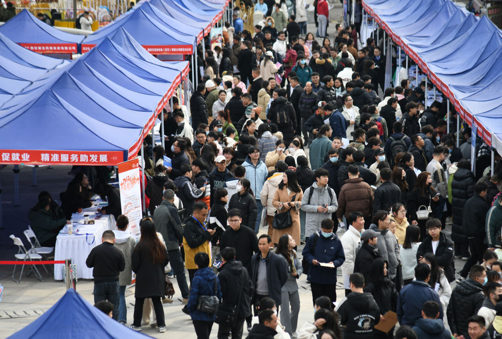 求職者在2024年陝西工會(hui) “春送崗位”就業(ye) 服務月現場招聘會(hui) 上了解招聘信息(2024年3月6日攝)。新華社記者 張博文 攝