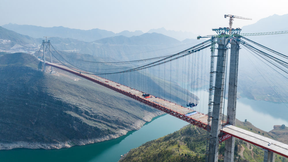 貴州交建集團投資建設的納晴高速牂牁江大橋順利實現合龍,為(wei) 納(雍)晴(隆)高速全線建成通車打下堅實基礎(4月28日攝,無人機照片)。新華社記者 陶亮 攝