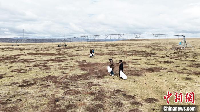 5月8日,瑪曲縣牧民自發在草原上撿拾垃圾。九美旦增 攝