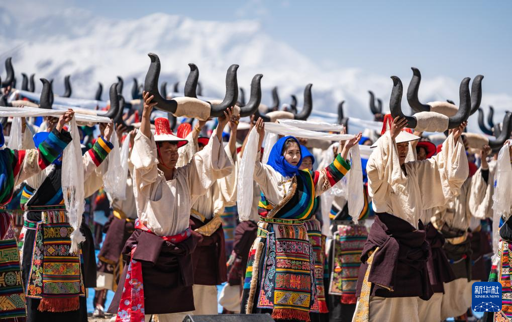 舞蹈演員正在納木錯開湖活動現場表演(5月19日攝)。