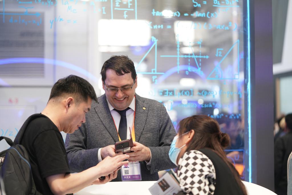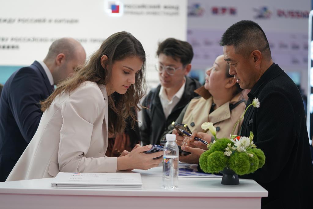 在中俄博覽會(hui) 現場,俄羅斯中小企業(ye) 股份公司國際活動局副主任馬克西姆·阿斯塔潘科夫,將前來谘詢的中國企業(ye) 的需求和聯係方式一一記錄在本子上,並將名片訂在上麵,非常認真。