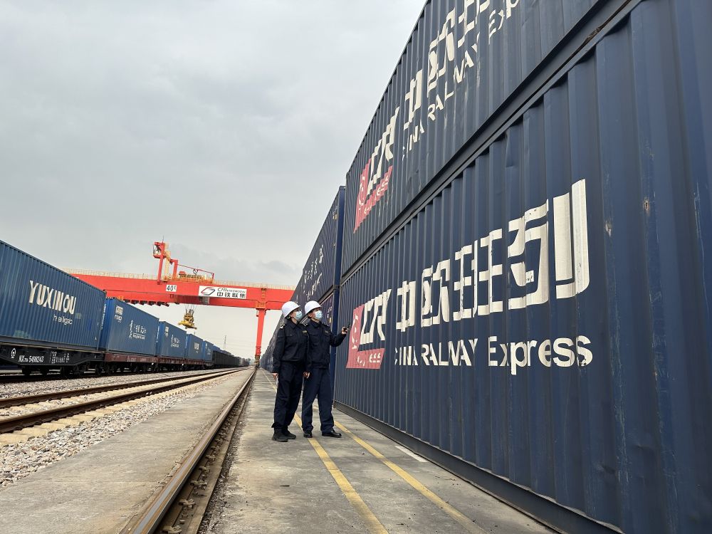 廣州海關(guan) 所屬廣州車站海關(guan) 關(guan) 員對中歐班列出口貨物進行監管。(受訪者供圖)